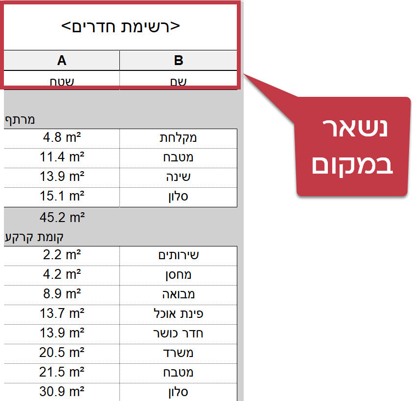 טבלאות 1 – הקפאת שורה ראשונה