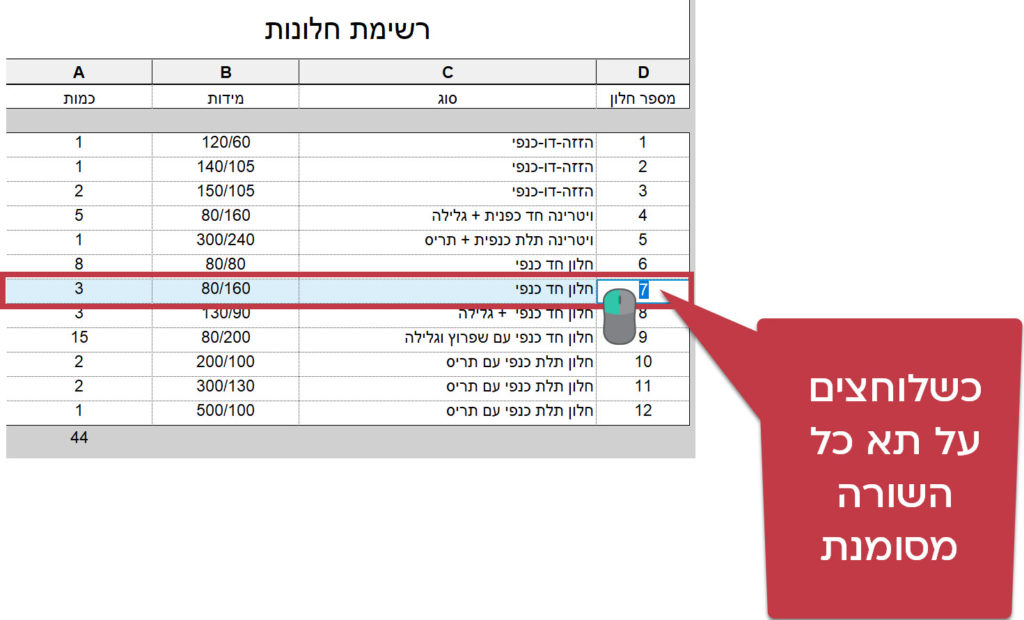 ברגע שלוחצים על תא מסויים כל השורה נצבעת אוטומטית