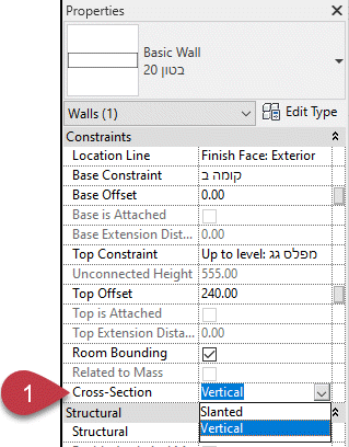 פשוט בוחרים את הקיר ומסמנים שהוא לא יהיה ורטיקלי אלה עם שיפוע – Slanted בתרגום מילולי “אלכסוני”..